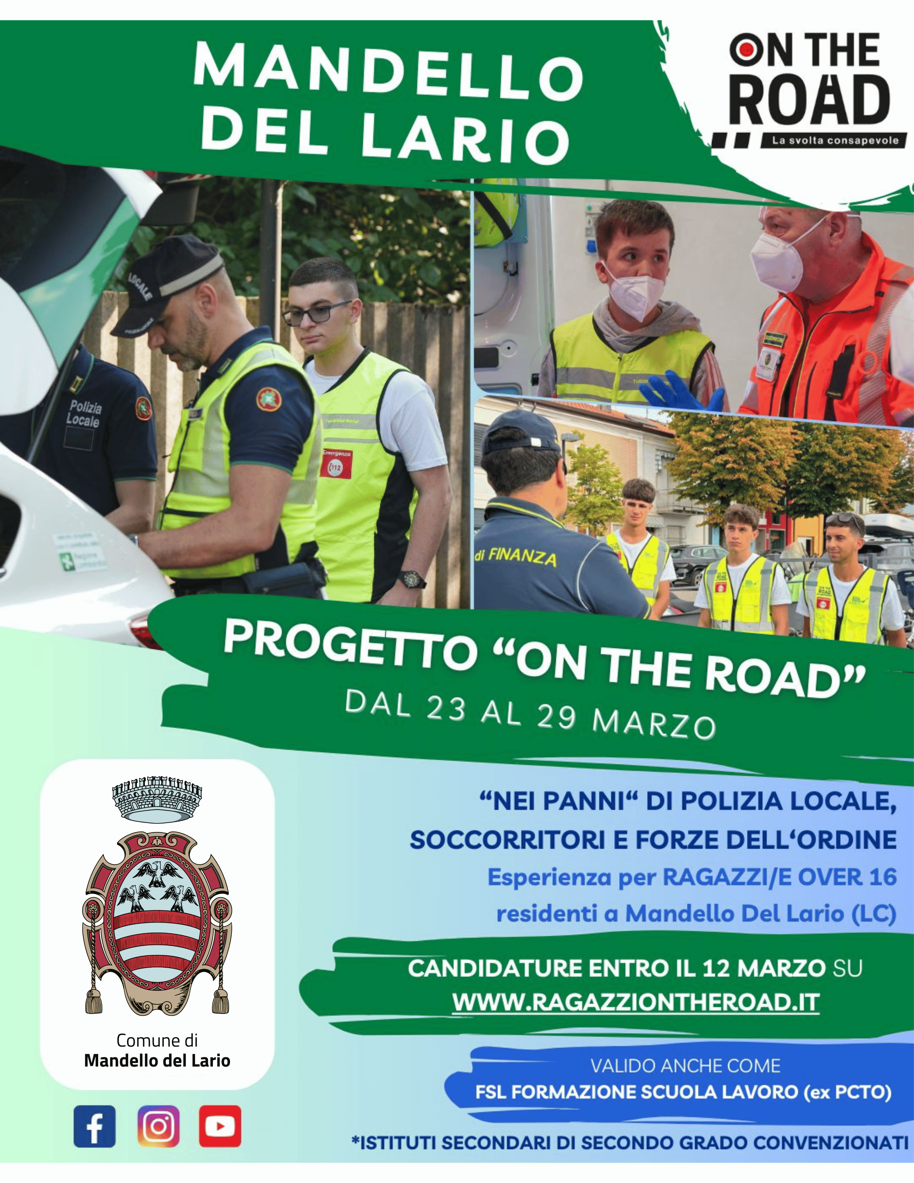 Il Comune di Mandello del Lario aderisce al progetto educativo “On the Road” e apre le candidature per i giovani del territorio interessati a partecipare all’esperienza formativa a contatto con il Corpo di Polizia Locale Comunale.
