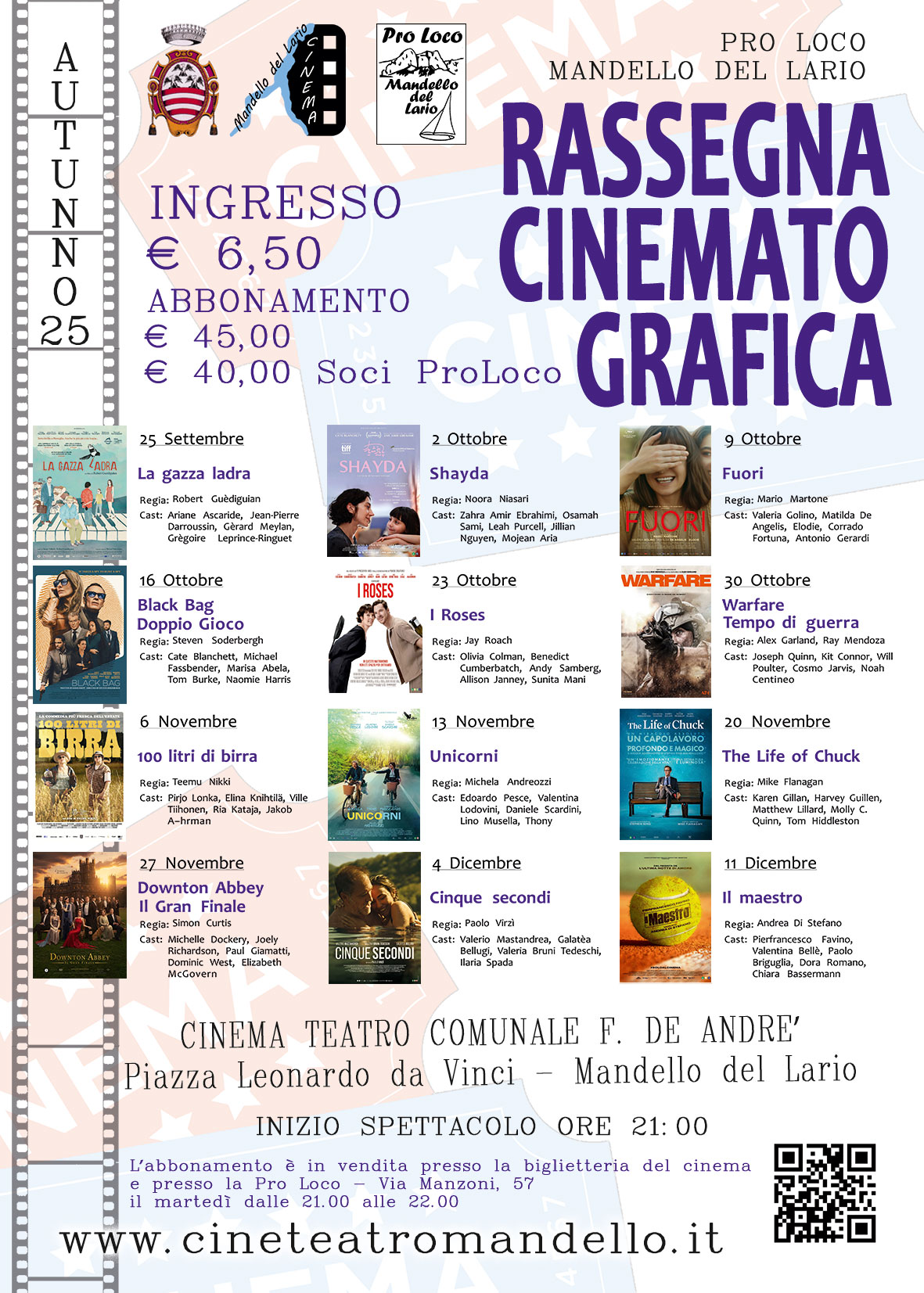 Ingresso: 6,50 (oppure giovedì con abbonamento)