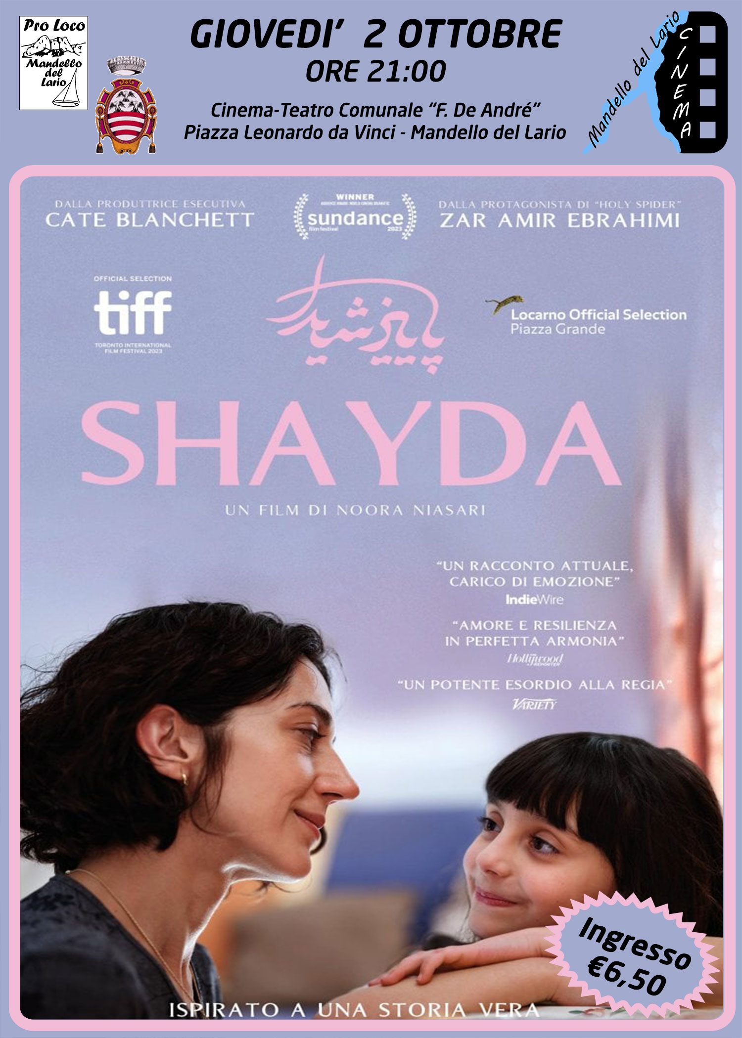 Ingresso: 6,50 (oppure giovedì con abbonamento)