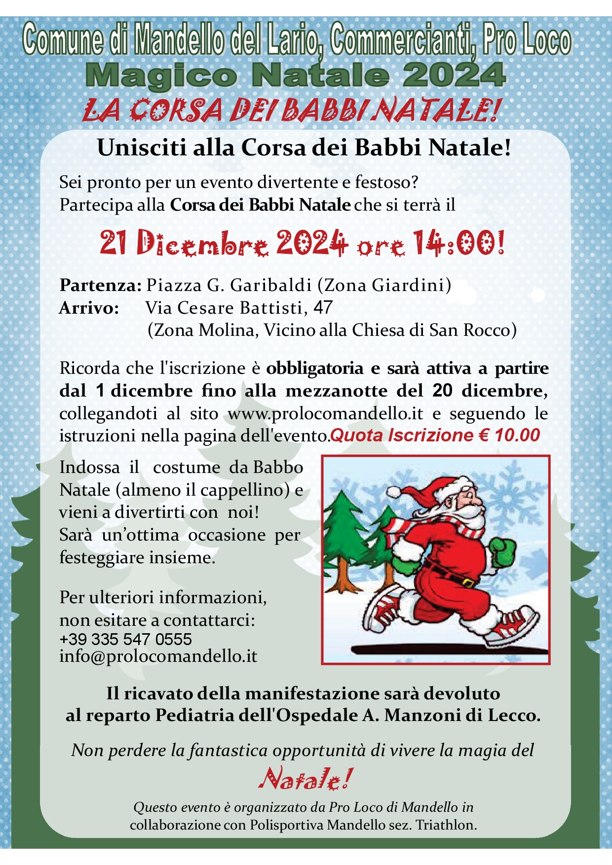 Sei pronto per un evento divertente e festoso? Partecipa alla Corsa dei Babbi Natale che si terrà il 21dicembre 2024 alle ore 14.00!