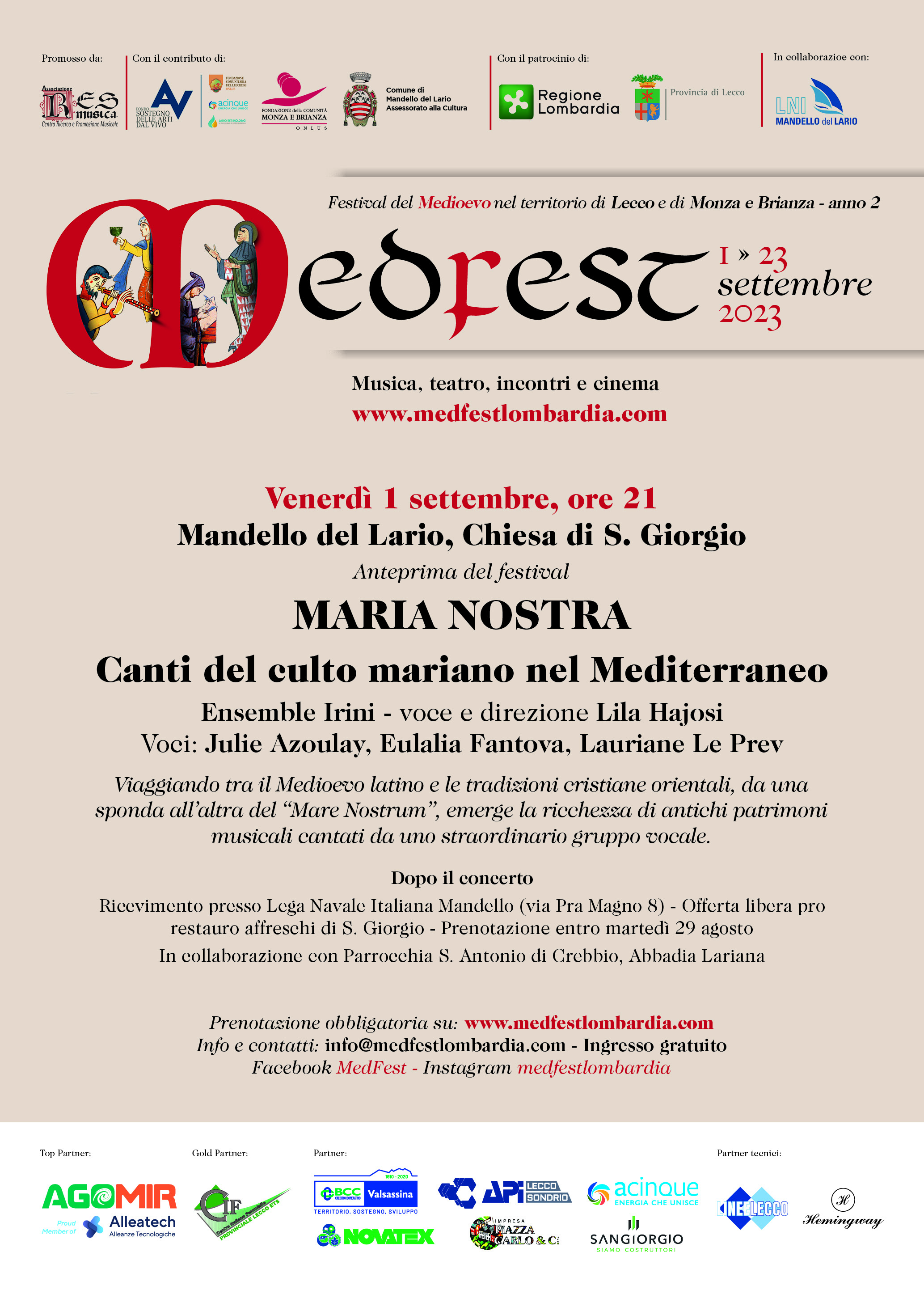 Prenotazione obbligatoria su: www.medfestlombardia.com