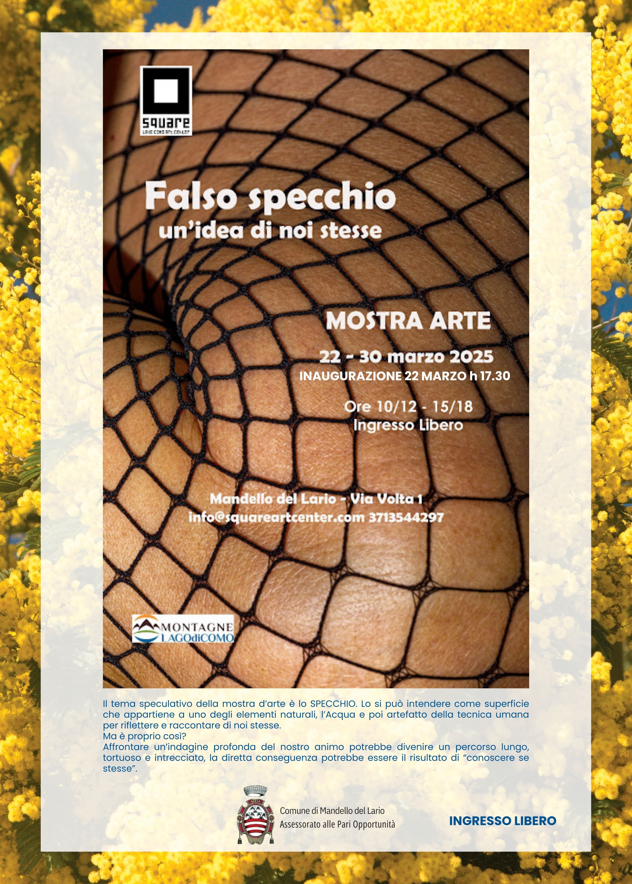 L'Assessorato alle Pari Opportunità del Comune di Mandello del Lario con Square Lake Como Art Center vi invitano, dal 22 al 30 marzo 2025, alla mostra d'arte "FALSO SPECCHIO"