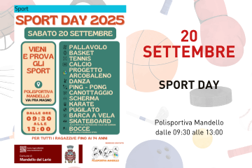 Torna anche quest’anno lo SPORT DAY, la manifestazione organizzata dal Comune di Mandello del Lario in collaborazione con la Polisportiva Mandello.