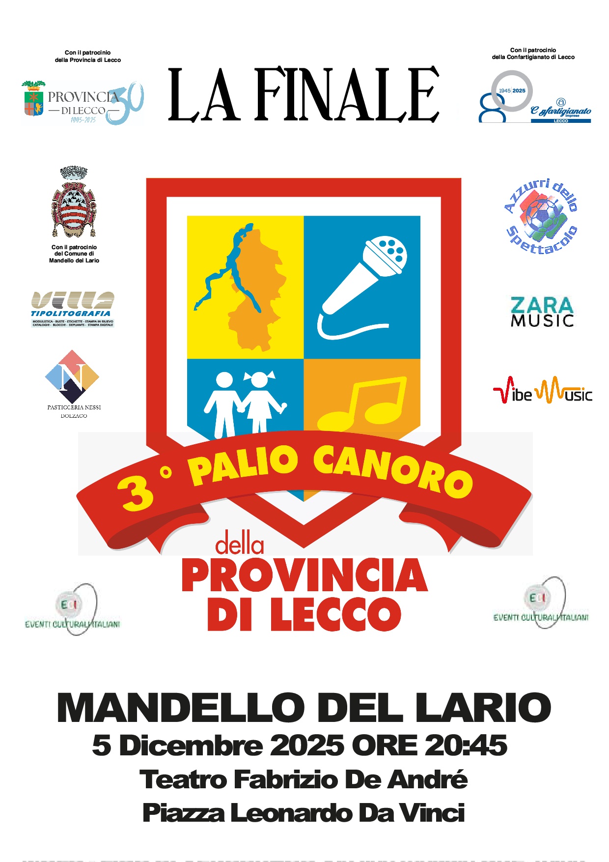 Presso il teatro Comunale " F. De Andrè " di Mandello del Lario si svolgerà la terza edizione del Palio Canoro della Provincia di Lecco - La finale