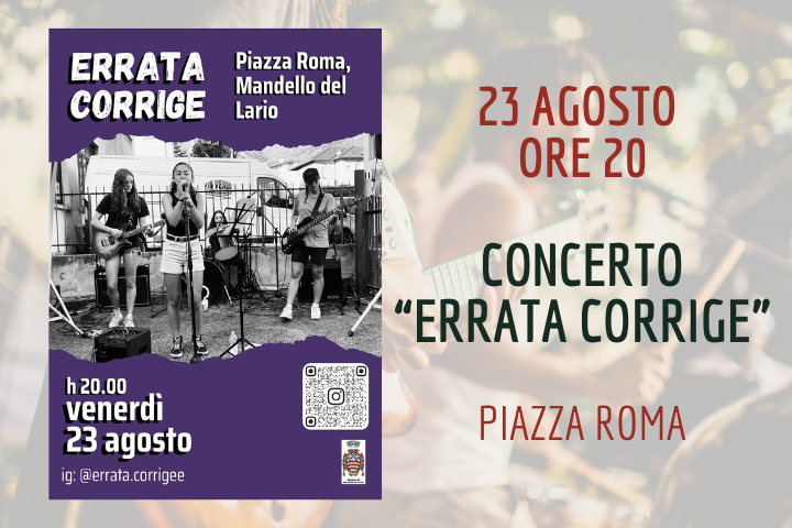 Concerto Rock del gruppo "ERRATA CORRIGE" in Piazza Roma alle ore 20.00