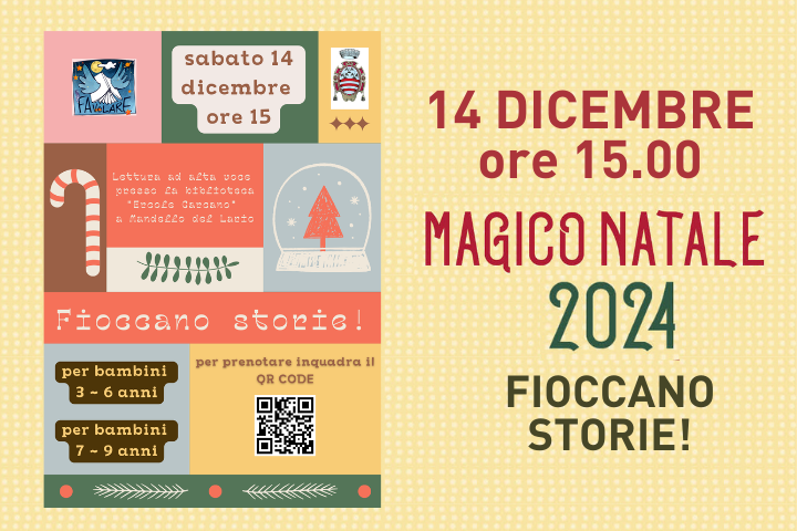 Sabato 14 dicembre presso la Biblioteca Comunale E. Carcano alle ore 15.00, letture per bambini 3-6 anni e 7-9 anni, a cura del gruppo Favolare