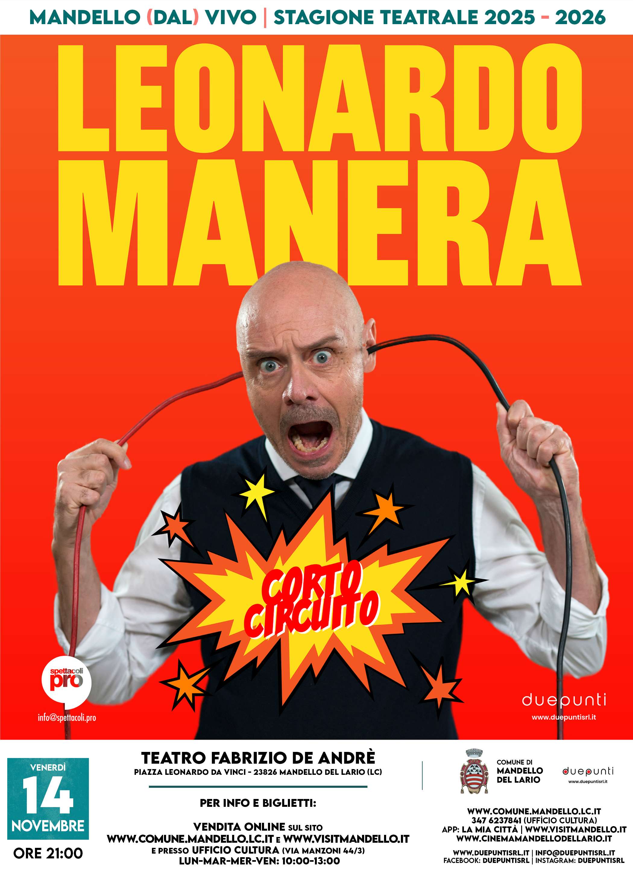 È la nostra vita, nella quale è difficile prendere una direzione ed è spesso impossibile scegliere tra dimensione etica ed estetica. È, in qualche modo, il caos degli opposti. In “Corto circuito”, Leonardo Manera, tra monologhi e personaggi contemporanei, prova attraverso la comicità a fare chiarezza, confrontandosi con la voce di un dio laico della modernità che lo induce continuamente in tentazione. Quale sarà la scelta finale?