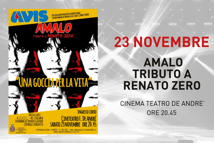 Avis Associazione Volontari Italiani del Sangue ODV Sezione Comunale di Mandello del Lario "Gianni Comini" vi invita ad assistere al concerto AMALO Tributo a RENATO ZERO "Una goccia per la Vita"