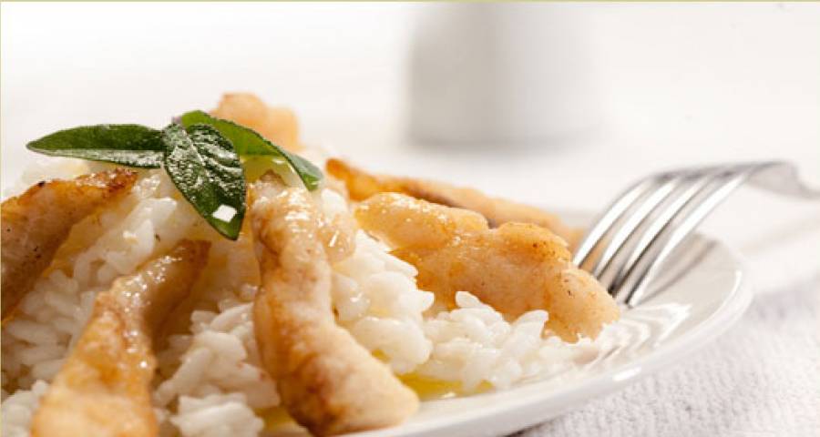 Il riso al pesce persico è uno dei piatti tipici della gastronomia lecchese e comasca: il pesce persico infatti è un pesce di acqua dolce, diffuso nel lago di Como e molto amato per la sua carne morbida e delicata.